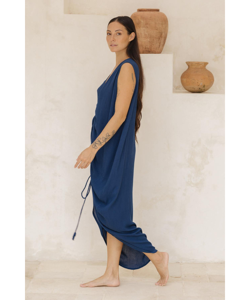 The Virgo Luna Dress is incomparably stylish, with a sophisticated high neckline, side pockets, and a breezy sleeveless style. Add a touch of effortless elegance to your wardrobe and turn heads as you move with confidence.